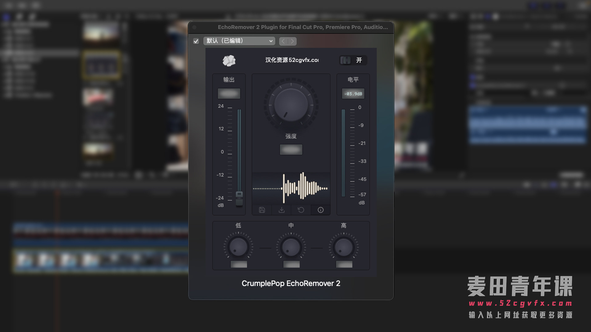 中文版FCPX+PR+AU 自动消除回声音频声音混响插件 这是一套常用的,而且非常方便快速强大的消除回声的音频处理工具,如在体育馆等宽阔的房间会产生回音,这款工具哼很好的消除,并对人声进行增强,非常不错的音频降噪插件,收藏备用!
